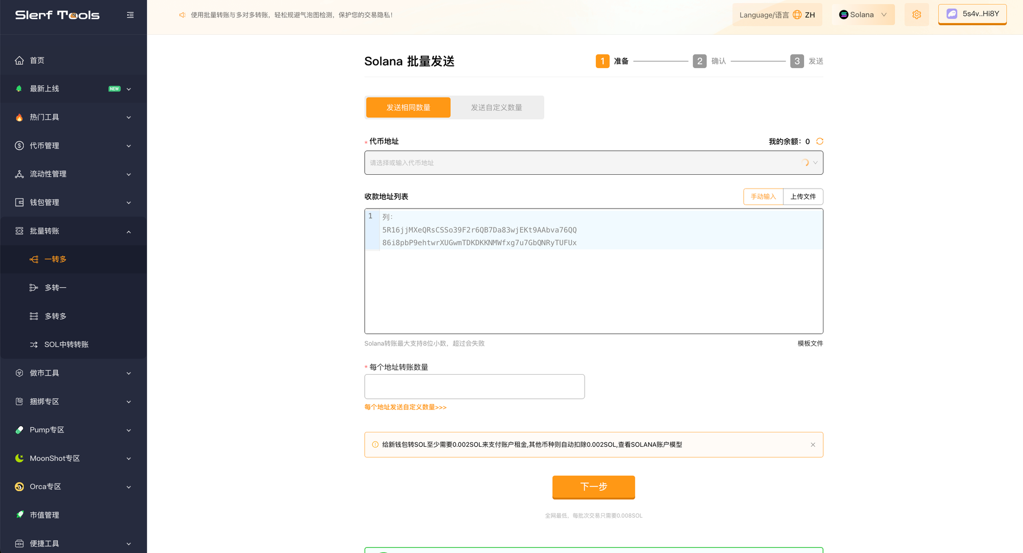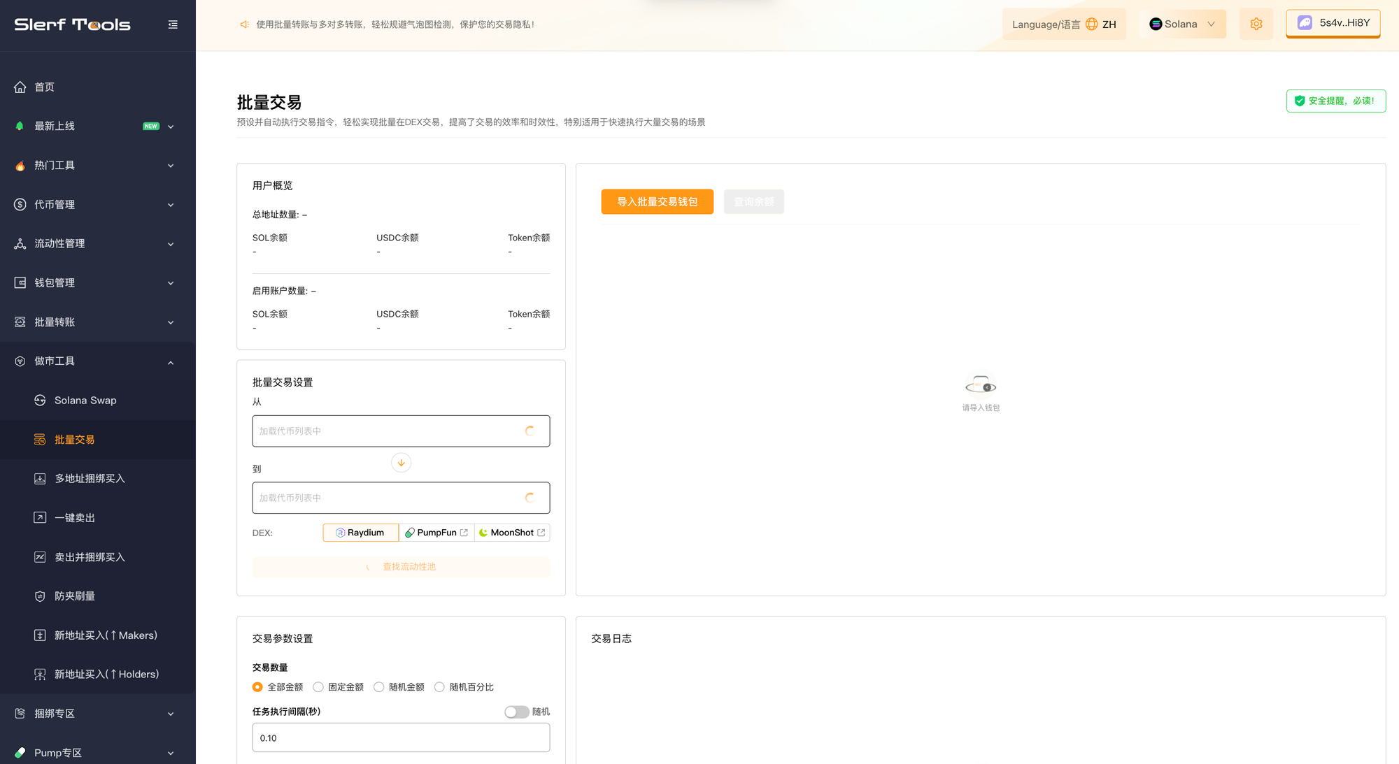 SlerfTools 是 Solana 批量交易的终极工具,支持多地址转账、流动性管理和市值自动化操作。其高效、安全、灵活的功能,帮助项目方优化市场表现,节省时间和费用,是管理 Solana 代币的不二之选。