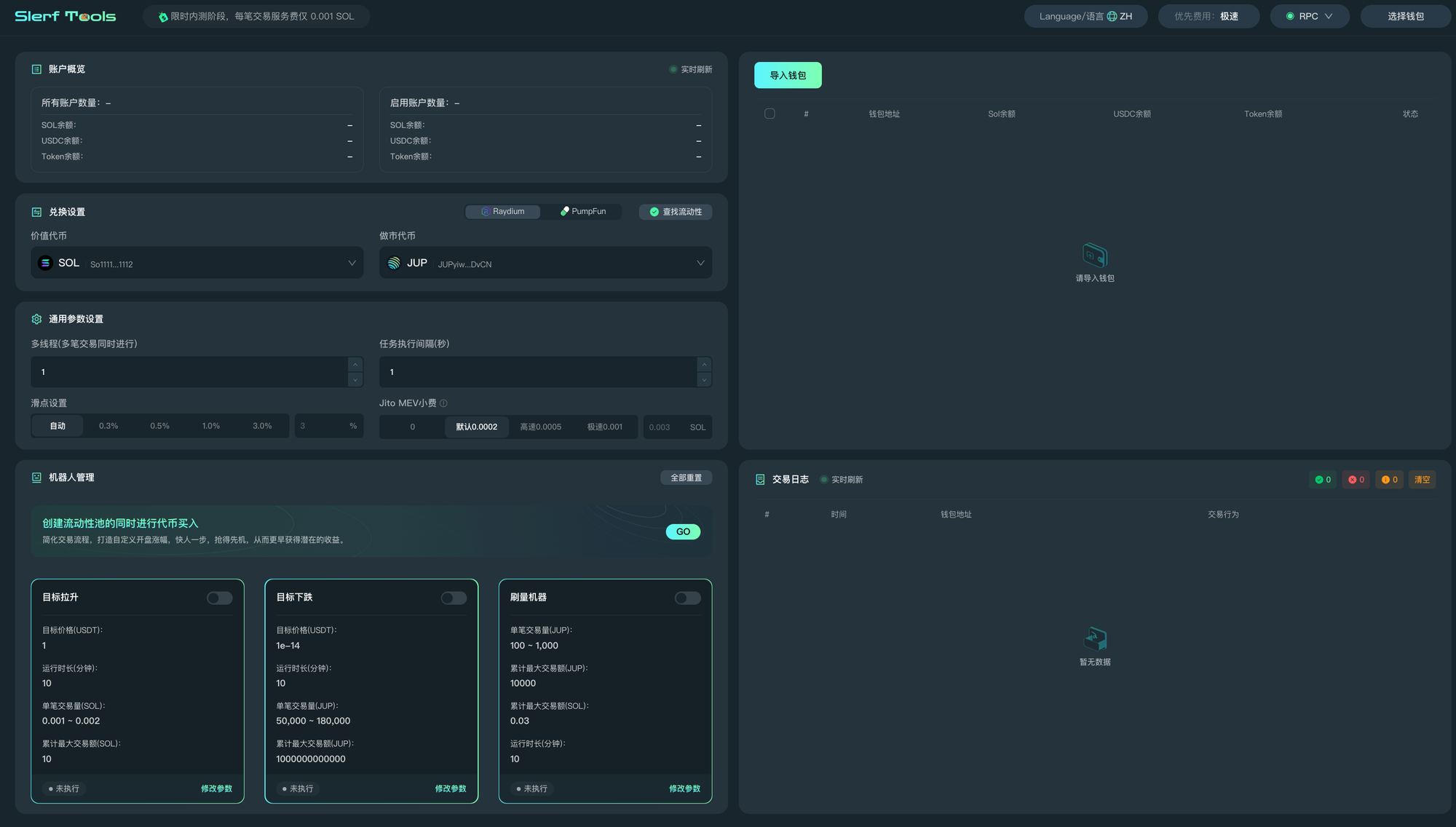 SlerfTools 简化了Solana上的批量交易操作,提供用户友好的界面和强大的自动化功能。无论是管理代币发行还是维护市场活动,SlerfTools 都是您值得信赖的平台。