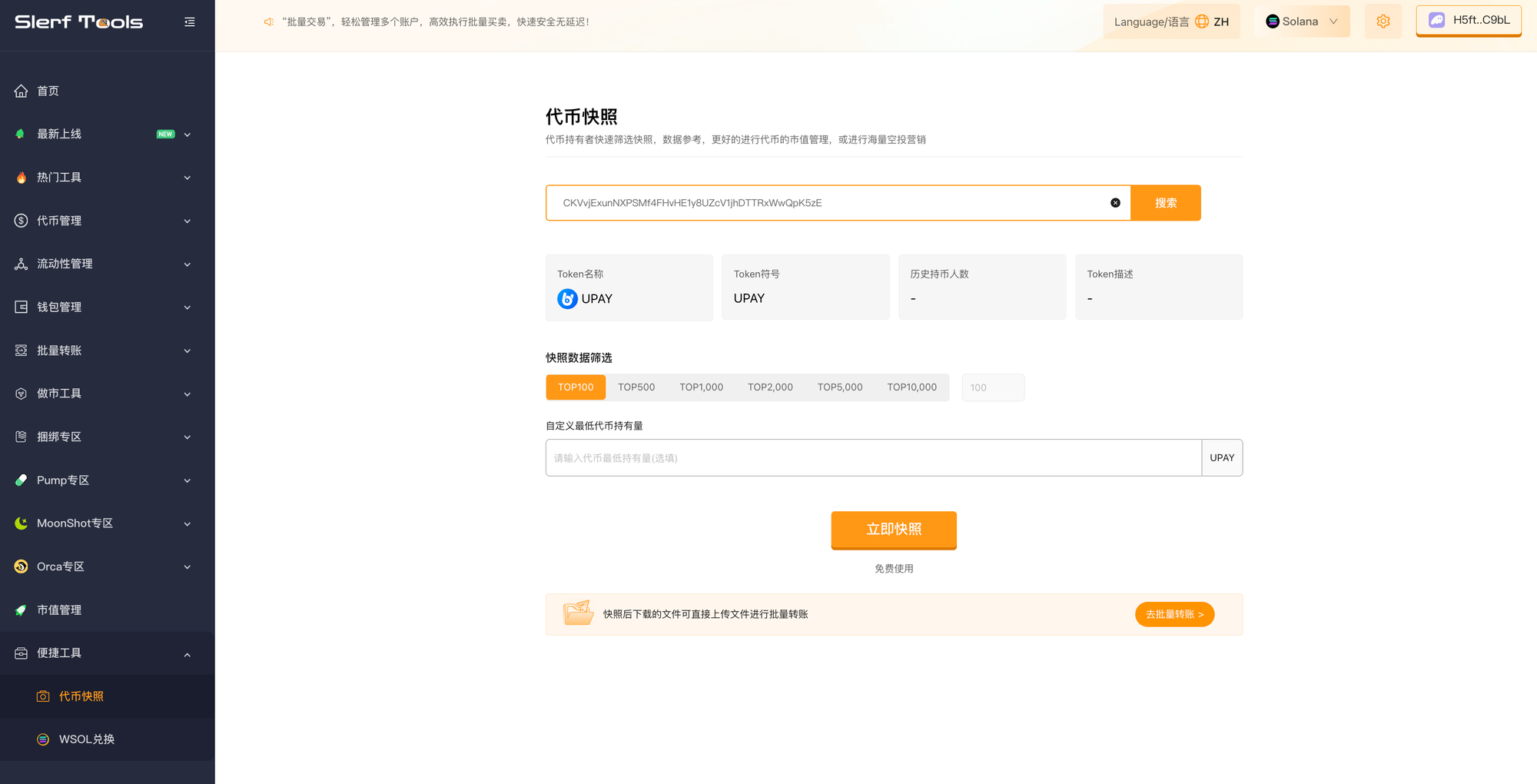 Solana 代币快照工具:SlerfTools 功能全解析